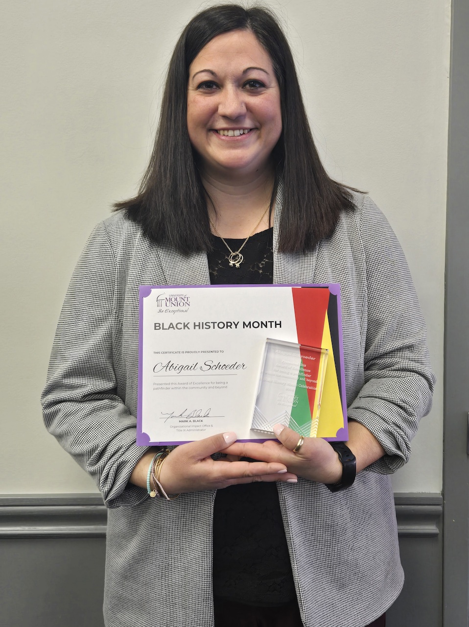 Schroeder’s journey in community service and giving back to her community evolved at Mount Union when she met Dr. Stephen Kramer. She was inspired by Kramer’s dedication to improving the lives of others and to educating and leading Mount Union students with unmatched care. Therefore, Schroeder wants everyone at this year’s Black History Month celebration to know that she is grateful for the recognition, but she hopes people feel inspired and get involved in their communities.