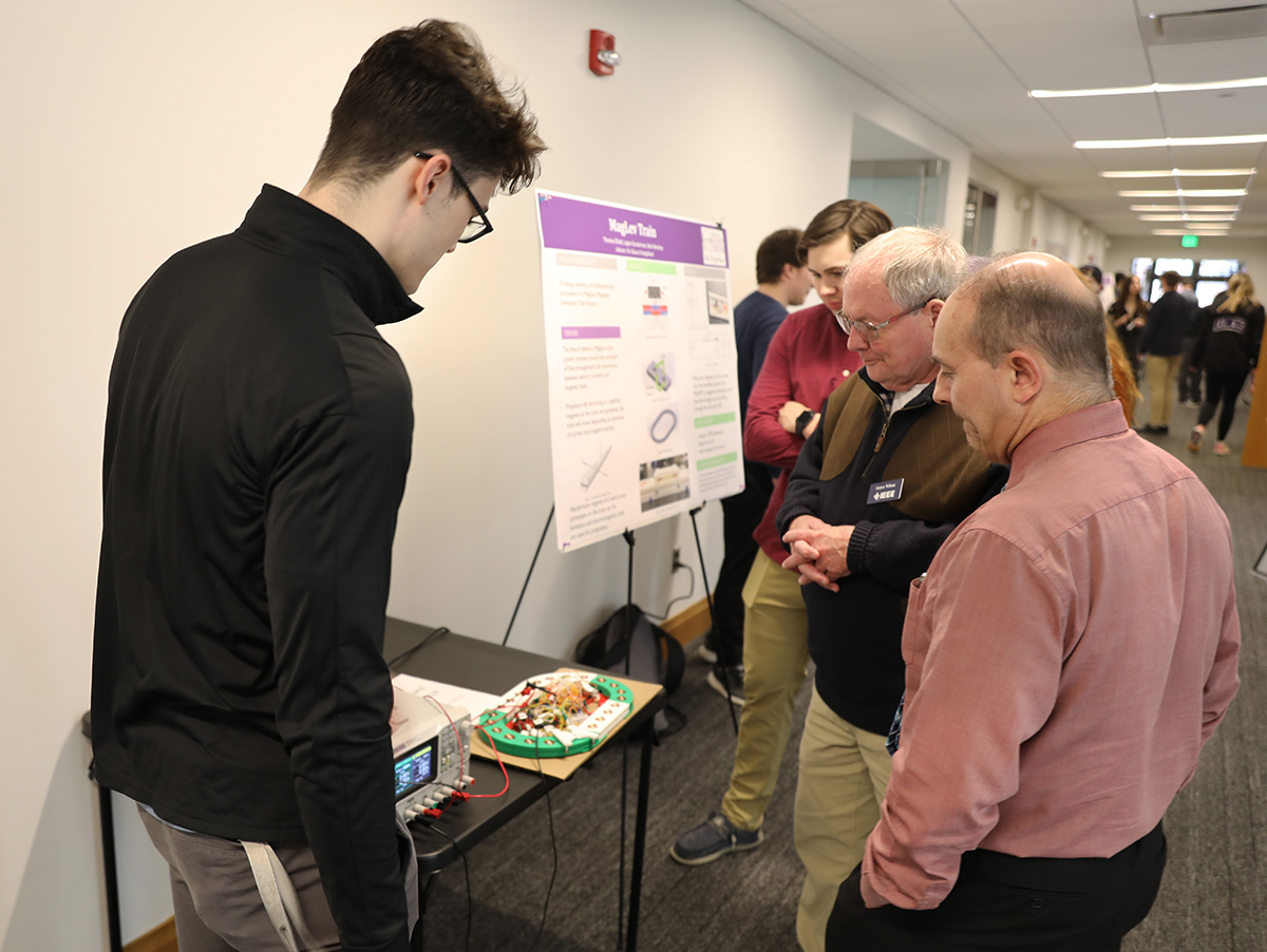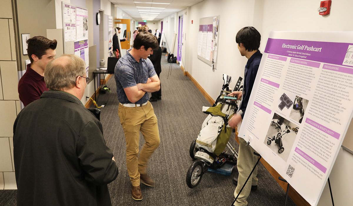 More than 30 unique prototypes and research projects from students of all levels were on display for the Mount Union and surrounding communities. Projects included interstate improvements, an electronic golf pushcart, a mobile welding table and the use of electromagnetic waves through virtual reality, among several others.